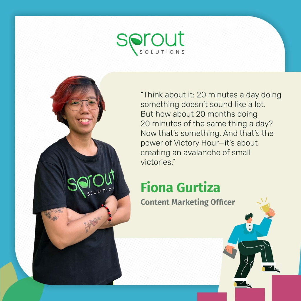 “The Victory Hour Challenge helped me stay more focused on work, chart a clear path on how to complete my to-do tasks, foster this pure hunger for learning, and create a habit of waking up early in the morning, even on weekends! This routine also improved my sleep, which is why I am excited and energized to wake up every day.”